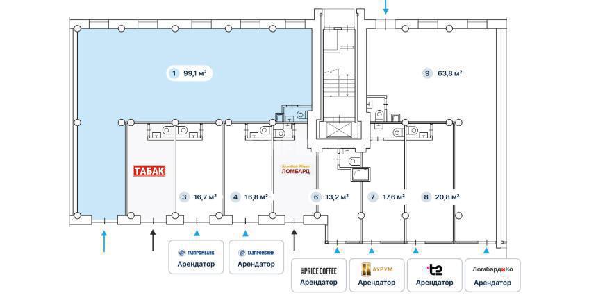 Общий месячный арендный поток предоставляется по запросу при подписании NDA