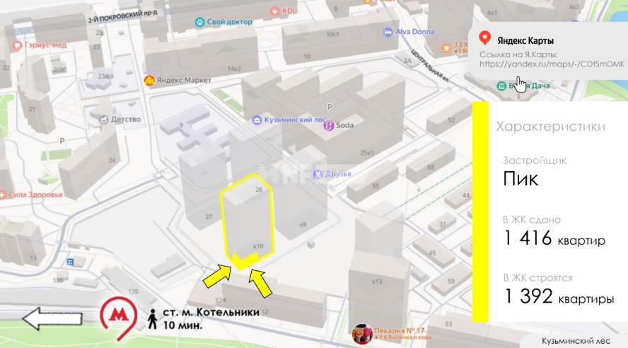 Угловое помещение Street Retail с витринаии и входами с двух сторон Street Retail в ЖК Кузьминский лес. Расположено на въезде. Рядом супермаркет. 10 минут пешком до м. Котельники. Дом введён в эксплуатацию. Арендаторы: 1. Аптека Ригла МАП - 195 000, ДДА 7 лет, безусловная индексация 5%. 2. Ozon МАП - 180 000, ДДА 5 лет, безусловная индексация 5%. Общий МАП - 375 000 руб.