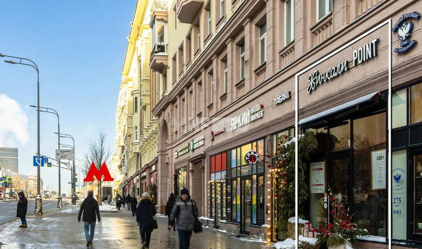 Здание расположено на первой фасадной линии улицы Красная Пресня, в пешей доступности от станций метро "Баррикадная", "Краснопресненская" и "Улица 1905 года". Интенсивный пешеходный и автомобильный трафик, развитая инфраструктура и сложившееся торговое окружение. В шаговой доступности расположены остановки общественного транспорта. Арендатор Хинкали Point, договор на 5 лет, индексация - 7%. МАП: 1 250 000 руб.